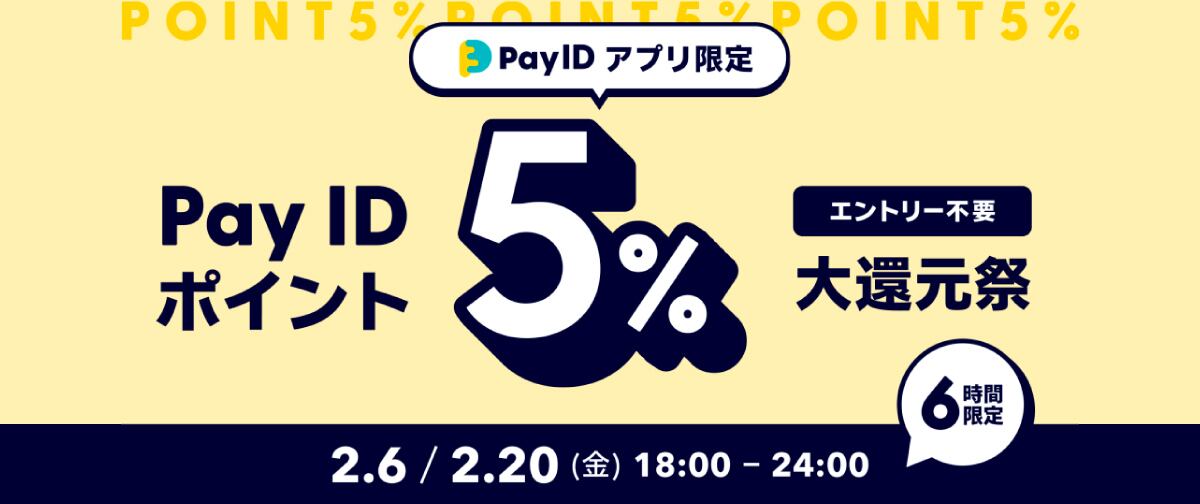 2/6(金)・2/20(金)開催【Pay IDアプリ限定】ポイント5%大還元祭